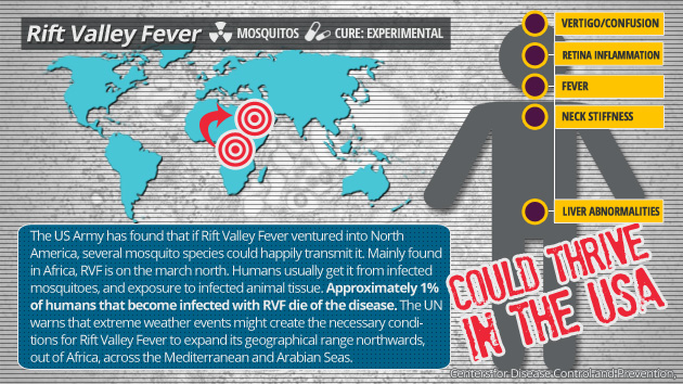 Đặc biệt, loài muỗi Aedes spp. có thể nhiễm virus do đốt máu gia súc bị bệnh, sau đó nó có thể truyền virus qua trứng và trứng của loại muỗi này có khả năng tồn tại vài năm trong điều kiện thời tiết khô ráo, chờ đến mùa mưa sẽ nở thành muỗi con mang mầm bệnh. Chính vì đặc điểm này, virut có thể tồn tại lâu dài trong tự nhiên và gây khó khăn cho việc loại trừ nguồn gây bệnh. Ngoài ra, virus có thể xâm nhập vào cơ thể con người để gây bệnh qua các vết thương hở nếu người tiếp xúc trực tiếp với gia súc và sản phẩm của gia súc bị bệnh như thịt, máu, dịch thể, nội tạng hoặc uống sữa tươi có mầm bệnh chưa được tiệt trùng hay hít phải mầm bệnh virut bay lơ lửng ngoài không khí.
