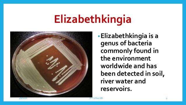 Elizabethkingia là một giống vi khuẩn thường tìm thấy trong môi trường trên phạm vi toàn cầu và đặc biệt đã phát hiện ở trong đất, nước sông, ổ chứa khác. Tuy nhiên, hiếm người mắc bệnh và trở nên đau. Các ca được chẩn đoán thông qua xét nghiệm nuôi cấy các dịch và máu. Elizabethkingia thường gây ra viêm màng não ở trên các trẻ sơ sinh và có thể đi vào dòng máu gây viêm hô hấp ở người suy giảm miễn dịch. Khoảng chứng 5-10 ca ở mỗi bang mỗi năm của Mỹ và một số ca báo cáo rải rác trong vụ dịch ở Mỹ và các quốc gia khác.