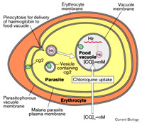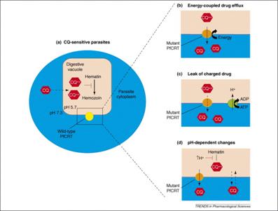 Kết quả cho biết sốt rét Plasmodium vivax kháng với CQ được báo cáo đầu tiên cách nay 12 năm và gần 30 năm sau nhận ra P. falciparum kháng CQ. Giờ đây, mất hiệu lực CQ đã cho thấy một vấn đề nghiêm trọng trong khâu sự phòng và điều trị bệnh này. Sự đột biến trong protein không bào tiêu hóa đã được mã hóa bởi một 13-exon gene, pfcrt chỉ ra gần đây về vai trò trung tâm đối với kháng thuốc CQ của P. falciparum. Có sự đột biến hay không trong pfcrt orthologues của các loài Plasmodium khác liên quan đến kháng CQ vẫn còn là câu hỏi mở. Báo cáo này mô tả pfcrt homologues từ P. vivax, P. knowlesi, P. berghei và Dictyostelium discoideum. Synteny giữa các gen P. falciparum và P. vivax đã được chỉ ra. Tuy nhiên, một nghiên cứu trên các phân lập bệnh nhân và các dòng (line) thích nghi với khỉ cho thấy không có mối liên quan nào trên in vivo CQR và đột biến codon trong gen của P. vivax. Đây là bằng chứng mà các dữ kiện phân tử về kháng CQ do P. vivax khác với trên P. falciparum.