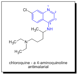Nhóm tác giả gồm Anna Caroline Campos Aguiar, Raquel de Meneses Santos, Flávio Júnior Barbosa Figueiredo, Wilian Augusto Cortopassi, André Silva Pimentel, Tanos Celmar Costa França, Mario Roberto Meneghetti, Antoniana Ursine Krettli cùng nghiên cứu và đăng tải trên tạp chí PLoS one. 2012; 7(5): e37259. doi: 10.1371/journal.pone.0037259 cho biết có hai loại thuốc mới nhóm 4 - aminoquinolein chống lại loại KSTSR đã kháng với thuốc chloroquine (CQ). Chloroquine (CQ) là một loại thuốc sốt rét hiệu quả với hồ sơ dược học tương đối an toàn. Tuy nhiên, CQ từ lâu đã không còn sử dụng để điều trị các BNSR nhiễm P. falciparum do sự xuất hiện và lan rộng của chủng KSTSR kháng thuốc CQ do P. falciparum và cũng được báo cáo đối với P. vivax. Dù đã kháng với CQ, các ứng cử viên thuốc mới dựa trên cấu trúc của CQ vẫn tiếp tục khuyến cáo như các công trình nghiên cứu đang tiến hành. Một đồng phân hay analog của CQ được tổng hợp như monoquinoline (MAQ) và so sánh với chất tổng hợp trước đây Bisquinoline (BAQ), cả hai được thử nghiệm chống lại P. falciparum trên điều kiện in vitro và chống lại P. berghei trên chuột, rồi được đánh giá trên in vitro để đánh giá tính độc tế bào và khả năng ức chế hình thành hemozoin.