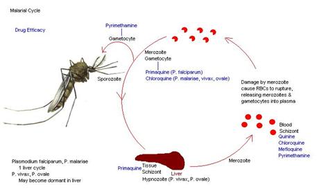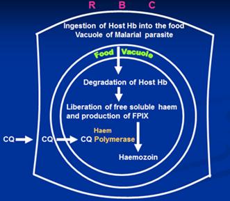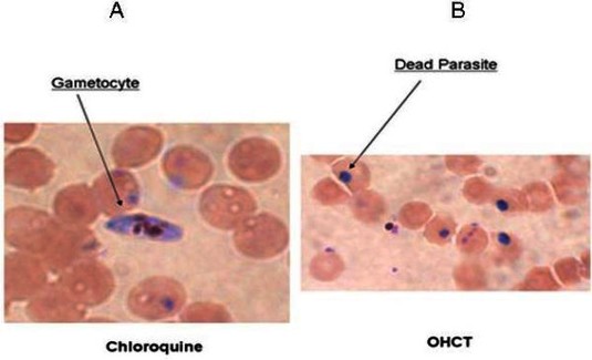 Nhóm tác giả gồmWesley W Sharrock, Rossarin Suwanarusk, Usa Lek-Uthai, Michael D Edstein, Varakorn Kosaisavee, Thomas Travers, Anchalee Jaidee, Kanlaya Sriprawat, Ric N Price, François Nosten, Bruce Russell cùng nghiên cứu và đẳng tải công trình nghiên cứu trên tạp chí Malaria Journal 2008, 7:94 doi:10.1186/1475-2875-7-94 cho biết Plasmodium vivax là một trong những nguyên nhân chính của sốt rét và vẫn là điều trị bằng CQ. Thuốc CQ ức chế sự trùng hợpcủa haem để đưa vào haemozoin. Các haem monomer tự do được xem là để xúc tác tổn thương oxy hóa đối với các tư dưỡng Plasmodium spp., giai đoạn khi chuyển hóa haemoglobin là tối đa. Tuy nhiên, sự quan sát trong điều kiện in vitro ban đầu trên các phân lập lâm sàng của P. vivax cho thấy chỉ là thể nhẫn(tư dưỡng sớm) còn nhạy với CQ. Trong nghiên cứu này, tác động đặc hiệu giai đoạn của CQ được điều tra trong các phân lập bảo quản lạnh đã được synchronous của P. vivax.
