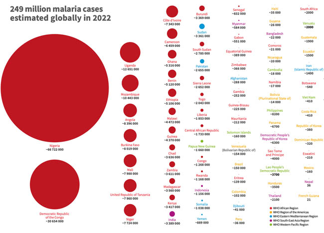 Hình 5. Ước tính số lượng ca bệnh sốt rét toàn cầu năm 2022