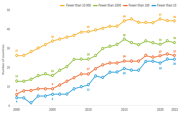 Hình 12.Số lượng quốc gia đã loại trừ sốt rét từ 2000-2022