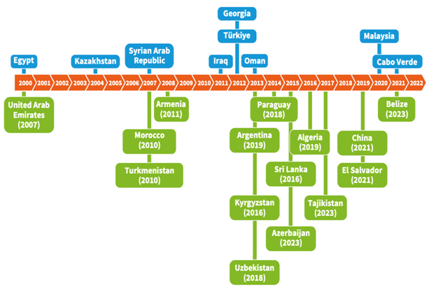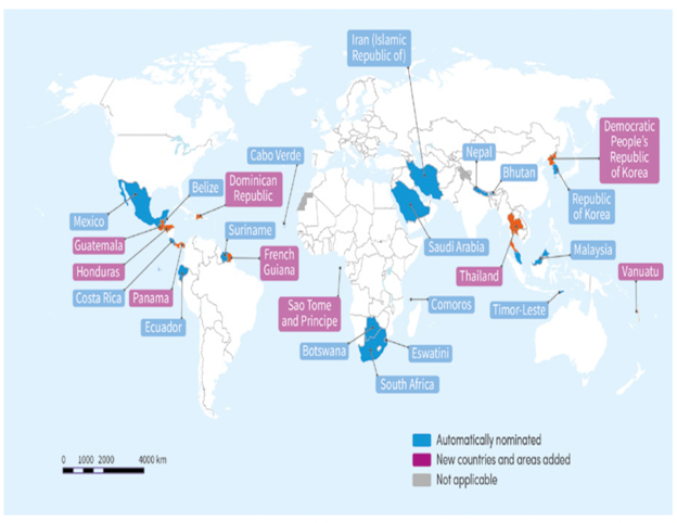 Xanh dương: Quốc giađủ điều kiện nhưng chưa được cấp chứng nhận LTSR.
