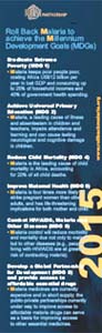 8 mục tiêu thiên niên kỷ đã được đề ra tại hội nghị thượng đỉnh thiên niên kỷ năm 2000 với mục tiêu xóa đói giảm nghèo và phòng chống bệnh tật trước năm 2015. Ngày 7/7/2007 chúng ta đã đi hết phân nữa của quá trình thực hiện những mục tiêu này. Giai đoạn còn lại, chúng ta sẽ làm những gì? Trong năm 2007 chúng ta đã chứng kiến những thành tựu ở nhiều lĩnh vực. Tuy vậy, nhiều quốc gia giàu có đã không thực hiện cam kết tài trợ cho những nước nghèo, và các quốc gia thuộc thế giới thứ ba có mức độ phát triển không cao. Thời hạn không còn nhiều, rất nhiều việc cần phải làm để thúc đẩy phát triển các quốc gia nghèo nhất trên thế giới trước năm 2015. Vào thời điểm này, Ban thư ký Sáng kiến đẩy lùi sốt rét (RBM) muốn nhắc lại cho cộng đồng quốc tế rằng phòng chống sốt rét là chìa khóa để đạt được 6 trong 8 mục tiêu thiên niên kỷ, vì thế họ kêu gọi các cam kết hỗ trợ quỹ, đẩy mạnh nỗ lực đấu tranh phòng chống căn bệnh này.