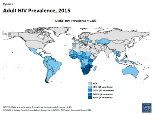·36,7 triệu [34,0 - 39.800.000] người trên toàn thế giới đang sống chung với HIV/AIDS vào cuối năm 2015, tăng 33,3 triệu từ năm 2010 là hậu quả của việc tiếp tục lây nhiễm mới, những người sống lâu hơn với HIV và tăng trưởng dân số nói chung.