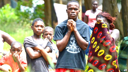 | Công dân thủ đô Monrovia của Liberia đang xem nhân viên y tế thu dọn thi thể nạn nhân Ebola |