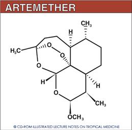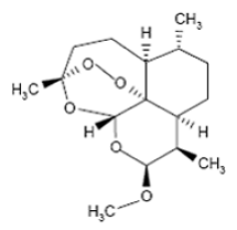 Viên thuốc Coartem chứa một phối hợp gồm hai thành phần có hoạt tính chống sốt rét là dẫn suất artemisinin loại artemether và lumefantrine. Cả hai thành đều có tác đụngiệt thể vô tính trong máu (blood schizontocides). Tên hóa chất của artemether là (3R,5aS,6R,8aS,9R,10S,12R,12aR)-10-methoxy-3,6,9-trimethyldecahydro-3,12-epoxypyrano[4,3-j]-1,2benzodioxepine. Artemether là một chất màu trắng, bột tinh thể và có thể hòa tan tự do trong acetone, hòa tan trong methanol và ethanol, không thể hòa tan trong nước. Nó có công thức thể hiện các tỷ lệ các nguyên tố trong hợp chất là C16H26O5 với một trọng lượng phân tử là 298.4 và công thức cấu trúc như dưới đây.