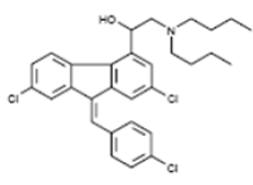 Tên hóa chất lumefantrine là (1RS)-2-(dibutylamino)-1-{(9Z)-2,7-dichloro-9-[(4chlorophenyl)methylene]-9H-fluorene-4-yl}ethanol. Lumefantrine là một chất bột tinh thể màu vàng, tan tự do trong N,N-dimethylformamide, chloroform và ethyl acetate; có thể hòa tan trong dichloromethane, tan nhẹ trong ethanol và methanol và không hòa tan trong nước. Nó có công thức phân tử là C30H32Cl3NO với trọng lượng phân tử 528.9 và cấu trúc như hình trên.