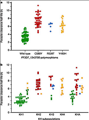 7.Ariey F, Witkowski B, Amaratunga C, Beghain J, Langlois A-C, Khim N, Kim S, Duru V, Bouchier C, Ma L, Lim P, Leang R, Duong S, Sreng S, Suon S, Chuor CM, Bout DM, Menard S, Rogers WO, Genton B, Fandeur T, Miotto O, Ringwald P, Le Bras J, Berry A, Barale J-C, Fairhurst RM, Benoit-Vical F, Mercereau-Puijalon O, Menard D: A molecular marker of artemisinin-resistant Plasmodium falciparum malaria. Nature 2014, 505:50-55.