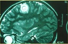 -Triệu chứng thần kính trung ương: động kinh là hay gặp nhất, nhức đầu, não úng thủy, ảnh hưởng tủy sống, 25% trường hợp xuất hiện các nốt dưới da có thể sờ thấy được;