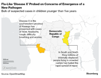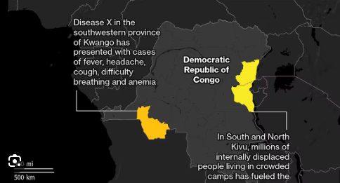 Theo Bộ Y tế Công cộng, Vệ sinh và An sinh Xã hội của của nước Cộng hòa Dân chủCongo (sau đây gọi tắt Congo), một căn bệnh chưa xác định (gọi là bệnh X) đã gây ra gần 100 ca tử vong và hơn 400 ca nhiễm. Thậm chí, có nguồn tin cho rằng, số người chết có thể lên trên con số ấy. Các ca mắc được phát hiện ở khu vực Panzi, tỉnh Kwango,Congo. Các viên chức y tế công cộng (YTCC) khẩn cấp đã được điều động đến khu vực này. Điều ghi nhận đầu tiên là các bệnh nhân có triệu chứng [sốt, nhức đầu, nghẹt mũi, ho, khó thở và thiếu máu].
