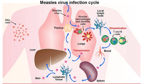 Chu kỳ nhiễm virus sởi trong cơ thể người