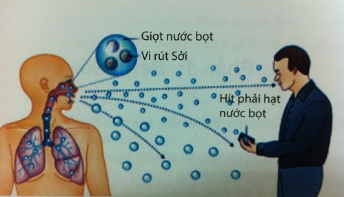 Đường lây truyền virus sởi chủ yếu qua dịch tiết người bệnh bắn vào không khí