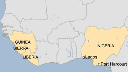Ebola đã lây lan tới Nigeria qua Patrick Sawyer, một người Mỹ gốc Liberia di chuyển tới Lagos trước khi tử vong. Bộ trưởng Bộ y tế onyebuchi Chukwu cho biết rằng một trong những người đã tiếp xúc với Patrick Sawyer đã lẩn trốn khỏi nhóm giám sát Nigeria và di chuyển tới Cảng Harcourt, nơi anh ta tìm kiếm trợ giúp y tế. Theo Bộ trưởng, mặc dù người này sau đó đã hồi phục nhưng bác sĩ điều trị cho anh ta đã tử vong vào hôm thứ Sáu tuần trước và các xét nghiệm cho thấy ông đã mắc Ebola mới chỉ được công bố bởi Bộ trưởng Bộ y tế. Trước đó bác sĩ điều trị cho ông Sawyer cũng đã tử vong.