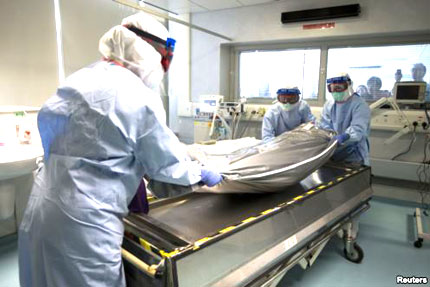 Hơn 240 nhân viên y tế đã bị nhiễm Ebola-một con số mà WHO cho là “chưa từng có tiền lệ” (unprecedented) và chỉ ra rằng nhiều ca bộ đồ bảo hộ, thậm chí cả găng tay cao su và mặt nạ, cũng không có. Bác sĩ đó trở thành ca tử vong thứ sáu tại Nigeria, đất nước đông dân nhất châu Phi.