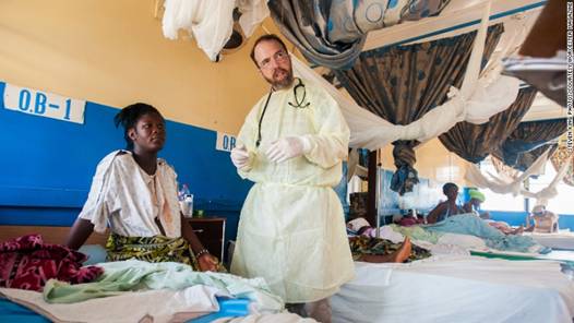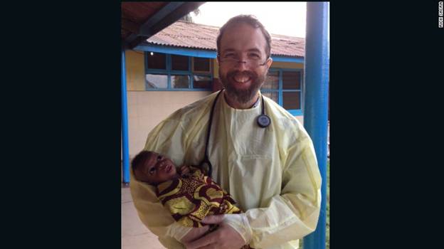 Bs. Richard Sacra chăm sóc cho một bệnh nhân tại phòng khám của ông tại Liberia. Trong tháng Tám, Sacra làm việc với tư cách là nhà truyền giáo của SIM và là một bác sĩ gia đình chăm sóc sản phụ tại Bệnh viện ELWA. Tuy nhiên, Ebola luôn cận kề, và ông đã không may bị nhiễm bệnh từ một bệnh nhân. Tổ chức truyền giáo của ông cho ông quay trở lại Hoa Kỳ để điều trị ở Nebraska. Ông đã hoàn toàn bình phục và quay trở lại Liberia vào tháng 1 để giúp đỡ. Ông nói: “Tôi rất biết ơn những người đã quan tâm, yêu thương tôi khi tôi cần. Tôi đã cảm thấy cực kỳ xấu hổ khi mắc Ebola. Tôi biết ơn Chúa vì cho phép tôi sống, tiếp tục tạo ra những khác biệt nhỏ trong cuộc sống mọi người”.