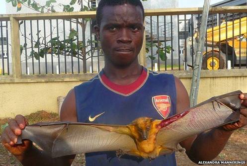 Dơi cũng được biết đến như là động vật mang mầm bệnh vi-rút Ebola-Người thợ săn này được chụp hình vào năm ngoái