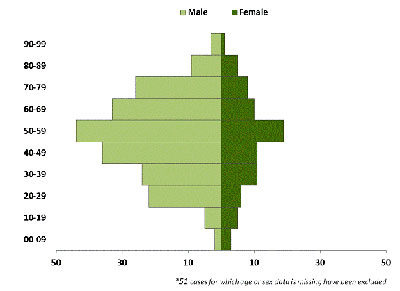 Tuổi trung bình của các trường hợp này không được báo cáo như nhân viên y tế được báo cáo độ tuổi trung bình là 50 tuổi.