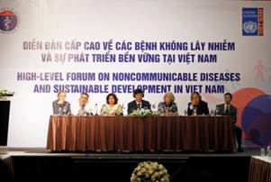 Ở Việt Nam, nỗ lực của MOH là cải thiện hệ thống chăm sóc sức khỏe ban đầu nhằm giảm tải cho các bệnh viện cũng sẽ mang lại lợi ích lớn lao cho phòng chống NCDs; phát hiện, sàng lọc và điều trị NCDs tại các cơ sở y tế cũng như chăm sóc giảm nhẹ là những giải pháp cốt lõi trong đáp ứng với NCDs theo từng nhóm bệnh tăng huyết áp, đái tháo đường, ung thư, bệnh đường hô hấp mạn tính và rối loạn tâm thần mà theo đó mỗi nhóm bệnh cần được chuyển thành các Chương trình mục tiêu y tế quốc gia ưu tiên ở Việt Nam. Với sự hỗ trợ của WHO, MOH đã thiết lập chương trình phòng chống NCDs, đồng thời vận động đầu tư và hỗ trợ xây dựng chính sách, chiến lược phòng chống những bệnh này chuyển từ phương pháp tiếp cận bệnh theo từng chuyên khoa sang phương pháp tiếp cận lồng ghép; cung cấp các hướng dẫn và mô hình chăm sóc liên tục bệnh nhân NCDs dựa vào cộng đồng, đặc biệt là mô hình lồng ghép để quản lý đồng thời một số NCDs chủ yếu theo hướng dẫn của WHO;sử dụng biện phápy tế dự phòng làm cơ sở phòng chống NCDs tại cộng đồng; phối hợp chặt chẽ phòng chống nguy cơ NCDs qua các hoạt động liên ngành, mục tiêu quốc gia, môi trường sức khoẻ lành mạnh; ban hành vănbản luật và dưới luật cấm hút thuốc nơi công cộng; đánh thuế cao với rượu bia, thuốc lá; khuyến khích chế độ dinh dưỡng, hoạt động thể chất lành mạnh phù hợp với cộng đồng.