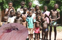 Hình 17. Lấy máu xét nghiệm ký sinh trùng sốt rét ở cộng đồng trong chiến dịch SMC của MSF