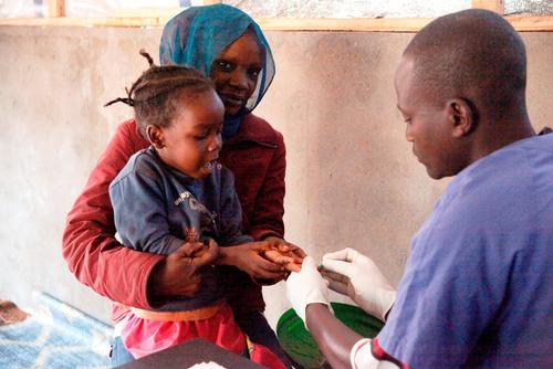 Hình 16. Một bé gái trẻ uống thuốc hóa dự phòng sốt rét (malaria chemio-prophylaxis)