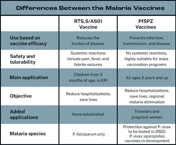Hình 8. Một số điểm khác nhau giữa hai loại vắc-xin sốt rét RTS,S/AS01 và PfSPZ