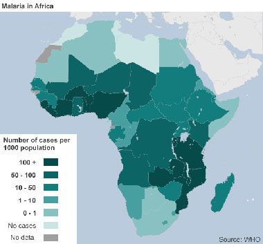 | Gánh nặng sốt rét thế giới vẫn tập trung chủ yếu ở châu Phi |