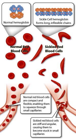 Hồng cầu bình thường và hồng cầu lưỡi liềm (nguồn: learn.genetics) |