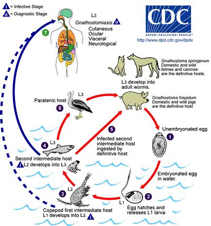Gỏi cá sống là đặc sản của vùng duyên hải Việt Nam. Món gỏi cá sống tuy rất ngon nhưng nó vẫn là mối đe dọa đối với sức khỏe chúng ta. Cá sống có thể nhiễm khuẩn và nhiễm ký sinh trùng, đặc biệt giun đầu gai Gnathostoma spp và sán lá gan nhỏ. Các loại giun này rất phổ biến tại vùng Đông Nam Á, Nam Mỹ, Mexico, Peru và Ecuador. Việt Nam là một trong những quốc gia có tỷ lệ nhiễm giun đầu gai và sán lá gan nhỏ khá cao. Giun đầu gai trưởng thành sống trong dạ dày chó và mèo. Trứng giun theo phân nhiễm vào nước chảy xuống ao hồ, sông, rạch. Trứng nở ra ấu trùng và ấu trùng bị một loại giáp xác thật nhỏ có tên là cyclop ăn vào. Cá, lươn, rắn, ếch nhái, gà vịt và các loại thủy cầm (waterfowl) ngẫu nhiên nuốt cyclop vào bụng và bị nhiễm giun đầu gai. Trong các loài vật vừa kể, ấu trùng giun sẽ định vị trong thịt. Khi chúng ta dùng cá sống, ấu trùng vào bụng, xuyên ruột và đi lang thang trong cơ thể. Giun có thể vào gan, vào mắt, di chuyển dưới da, hoặc đến định vị trong não hay tủy sống. Đây là bệnh Gnathostomosis. Đi đến đâu, giun gây tình trạng viêm đến đó. Tùy nơi giun định vị mà triệu chứng lâm sàng sẽ khác nhau (làm giảm thị lực hoặc mù, gây ho nếu ở hệ hô hấp, nguy hiểm nhất là nếu giun định vị trong hệ thần kinh trung ương và gây chứng viêm não tủy, làm rối loạn cảm giác, liệt tứ chi và có thể tử vong). Không dễ gì chẩn đoán bệnh giun đầu gai, nếu biết rõ nơi định vị của nó, thì có thể làm sinh thiết, xét nghiệm. Người ta cũng có thể chẩn đoán bệnh qua xét nghiệm huyết thanh học...Ngược lại, sán lá gan nhỏ thường lưu hành ở một số tỉnh miền Trung, do tập quán ăn sống gỏi cá và một trong những hậu quả nghiêm trọng của nhiễm loại sán này là về lâu dài sẽ bị xơ gan mật, ung thư đường mật đã được chứng minh và báo cáo qua y văn.