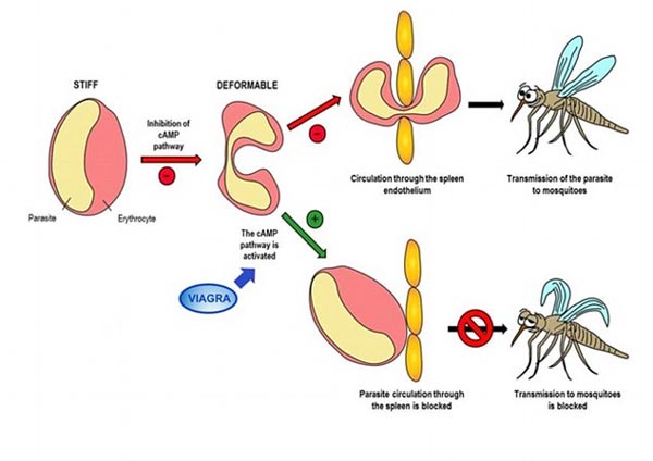 Trong nghiên cứu mới, các nhà khoa học nhận thấy, Viagra - một loại thuốc đã được chứng minh an toàn ở người, có thể khiến các dạng ký sinh trùng hữu tính của ký sinh trùng sốt rét cứng chắc hơn, khiến chúng bị khử hoạt động ở lá lách và do đó ngăn chặn sự truyền nhiễm ký sinh trùng hữu tính sang muỗi. Đây là một bằng chứng thú vị, mang hy vọng phát triển các loại thuốc mới, đặc biệt nhắm vào các enzym phosphodiesterase của ký sinh trùng và ngăn chặn sự truyền nhiễm bệnh.