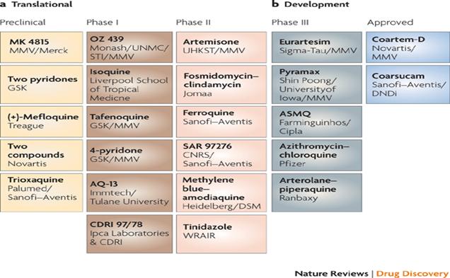 Nhóm tác giả Aaron Nilsen, Alexis N. LaCrue, Karen L. White, Isaac P. Forquer và một số cộng sự khác vừa đăng tải trên tạp chí Science Translational Medicine (2013: Vol. 5, Issue 177, pp. 177ra37. Mục đích của phát triển thuốc sốt rét mới là tìm ra một phân tử có thể tác dụng đa đích đa giai đoạn của chu kỳ ký sinh trùng, do đó tắc động lên khâu ngăn ngừa, điều trị và lan truyền bệnh. Phân tử 4(1H)-quinolone-3-diarylethers là một hoạt chất tiềm năng ức chế hệ thống phức hợp mitochondrial cytochrome bc1 complex của ký sinh trùng. Các hợp chất này có hoạt tính cao chống lại cả ký sinh trùng loài KSTSR ở người là Plasmodium falciparum và Plasmodium vivax.