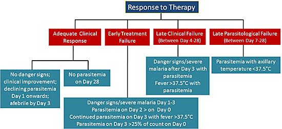 Kết quả cho thấy toàn bộ 103 bệnh nhân được theo dõi đầy đủ 28 ngày. Hb trung bình là 8,9 g/dL (biên độ 5-14.5 g/dL) và mật độ ký sinh trùng sốt rét trung bình là 5.608 KST/uL. Thời gian trung bình sạch ký sinh trùng là 34,7 giờ và tất cả bệnh nhân sạch ký sinh trùng gần vào ngày thứ 3. Không có sự thất bại điều trị sớm ở nghiên cứu này.