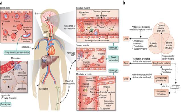 Trong khi đó, sốt rét ác tính thể não là nguyên nhân gây tử vong thông thường nhất đối với bệnh dịch này. Sốt rét thể não diễn ra khi tế bào máu chứa các ký sinh trùng sốt rét làm tắc nghẽn các mao mạch nhỏ của phủ tạng, đặc biệt là não khiến não bộ bị viêm và tổn thương.