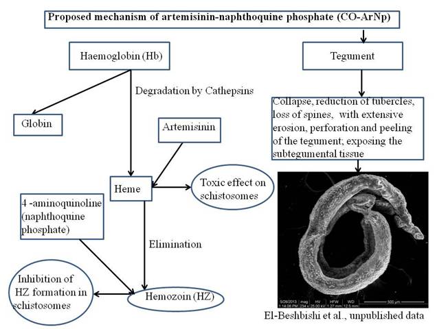 Kết quả cho thấy rằng, uống thuốc ANQ trong 3 ngày liên tiếp ở liều 7.3mg/kg cho sự khác biệt về làm sạch KST trên chuột vào ngày thứ 2 so với ANQ liều duy nhất, phục hồi PCV nhanh hơn liều duy nhất của ANQ, cho chỉ số tỷ lệ sống còn trung bình cao hơn so với nhóm ANQ dùng liều duy nhất. Tăng nồng độ CAT và SOD trong gan và thận trên các con chuột điều trị bằng liều ANQ duy nhất với sự khác biệt có ý nghĩa thống kê giữa ANQ 3CD và ANQ liều duy nhất xác định sự bảo vệ gan và thận của ANQ khi sử dụng liều cao.