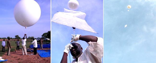 Bóng bay đã được thu hồi lại vào buổi sáng. Các ống có muỗi sống sót được đặt vào nước để kiểm tra xem côn trùng có thể đẻ trứng và hút máu sau đẻ trứng không?Khoảng cách bay tiềm năng trong những giờ bay trên cao của muỗi được ước tính bằng cách sử dụng các mô hình do Cơ quan Quản lý Khí quyển và Đại dương Quốc gia phát triển và sử dụng để theo dõi các thực thể di chuyển theo gió.