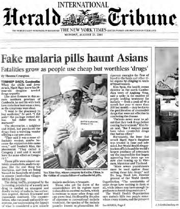 Các chuyên gia khẳng định thuốc trị sốt rét giả và kém chất lượng đang trở thành một vấn đề nhức nhối. Theo WHO, mỗi năm bệnh sốt rét cướp đi sinh mạng của 860.000 người trên thế giới, nhất là ở Đông Nam Á. Trong khi đó, bất chấp các cảnh báo của giới khoa học, các chính phủ khu vực này lại chưa có biện pháp hiệu quả để ngăn chặn dòng thuốc trị sốt rét kém chất lượng khổng lồ xâm nhập qua biên giới và lưu hành tràn lan trên thị trường khu vực.
