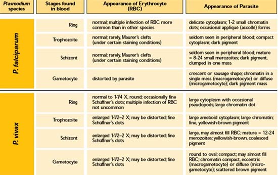 Ngược lại, nồng độ Chloroquine ức chế trung bình IC50 đối với P. vivax là 295 nM (227- 384) so với P. falciparum chỉ có 47.4 nM (42.2-53.3). Hai yếu tố tìm thấy có ảnh hưởng lên đáp ứngthuốc trên in vitro của P. vivax: giai đoạn đầu tiên của ký sinh trùng và thời gian thử nghiệm. Các phân lập của P. vivax ban đầu ở giai đoạn tư dưỡng có nồng độ ức chế trung bình của chloroquine IC50 cao hơn có ý nghĩa (478 nM [95% CI, 316-722]) so với giai đoạn thể nhẫn (84.7 nM [95% CI, 45.7-157]; P < 0.001). các phân lập đã synchrony của P. vivax và P. falciparum đều đạt đến đích của 40% số schizonts trong các giếng chứng trong vòng 30 giờ có nồng độ chloroquine IC50 cao hơn đáng kể lần lượt là (435 nM [95% CI, 169-1.118] và 55.9 nM [95% CI, 48-64.9]) hơn các phân lập mà thử nghiệm hơn 30 giờ (39.9 nM [14.6-110.4] và 36.9 nM [31.2-43.7]; p < 0.005).