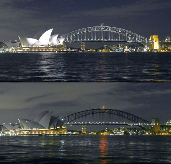 Nhà hát Opera và cầu cảng Sydney (Australia) trước và sau khi tắt điện