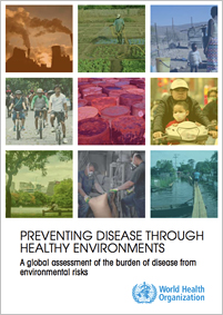 Báo cáo của WHO “Ngăn ngừa bệnh tật thông qua môi trường lành mạnh: một đánh giá toàn cầu về gánh nặng bệnh tật từ rủi ro môi trường”(Preventing disease through healthy environments: a global assessment of the burden of disease from environmental risks). Thông điệp chính nổi lên từ việc đánh giá toàn diện toàn cầu mới này là tử vong sớm và bệnh tật có thể được ngăn chặn thông qua môi trường lành mạnh hơn (premature death and disease can be prevented through healthier environments) đến một mức độ đáng kể, phân tích các dữ liệu mới nhất về mối liên hệ với môi trường bệnh và các tác động tàn phá của các mối nguy hiểm và rủi ro môi trường đến sức khỏe toàn cầu được hỗ trợ bởi ý kiến chuyên gia thì báo cáo này bao gồm hơn 100 danh mục bệnh và chấn thương. Các phân tích cho thấy 23% các ca tử vong trên toàn cầu và 26% các ca tử vong ở trẻ em dưới 5 tuổi là do các yếu tố môi trường sửa đổi, 68% các ca tử vong liên quan có thể được ước tính bằng các phương pháp đánh giá rủi ro so sánh dựa trên bằng chứng, những đánh giá của phơi nhiễm môi trường khác đã được hoàn thành thông qua ý kiến chuyên gia.