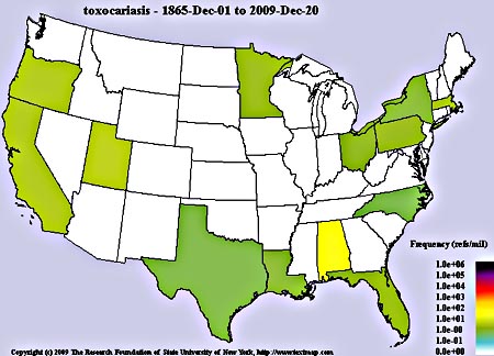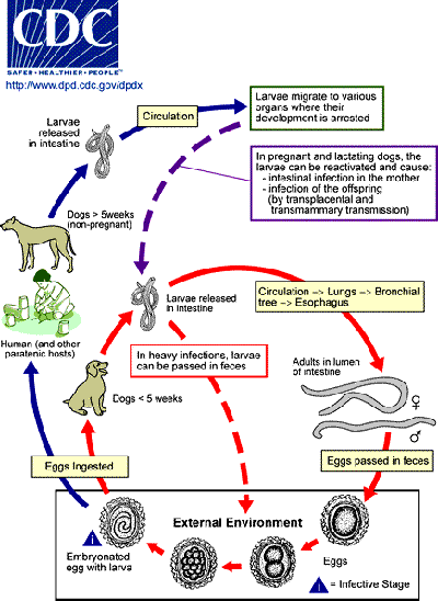 Các nhà nghiên cứu Lee AC, Schantz PM, Kazacos KR, Montgomery SP, Bowman DD ddang công tác tại khoa vi trùng và miễn dịch của đại học Thú y, viện Cornell, Ithaca, NY 14853, Mỹ đăng tải trên tạp chí Trends Parasitol. 2010 Apr;26(4):155-61. Epub 2010 Feb 19. kết quả cho biết lần lượt nhiễm trùng ấu trùng Toxocaracanis và Toxocara cati trên chó và mèo, có thể gây bệnh có ý nghĩa ở người. Tỷ lệ huyết thanh của các kháng thể chống Toxocara thay đổi theo các yếu tố như vị trí địa lý, tình trạng kinh tế xã hội và thói quen ăn uống. Các yếu tố nguy cơ nhiễm gồm thói quen ăn đất và trình độ học vấn thấp. Toxocara canis được xác định là nguyên nhân gây bệnh ấu trùng giun đũa chó ở người, nhưng Toxocara cati không nên xem nhẹ, nhiễm trùng tiềm tàng Baylisascaris procyonis, loại giun đũa trên gấu trúc đang gia tăng trên chó. Những chủ nuôi vật cưng cần giáo dục một cách hợp lý về các nguy cơ bệnh động vật truyền sang người và các nhà thú y nên sàng lọc thường xuyên ký sinh trùng và điều trị tất cả các vật cưng. Thiết lập về chương trình giám sát quốc gia để xác định tỷ lệ và tác nhân đặc hiệu trên các bệnh nhân nhiễm ấu trùng nên được hỗ trợ và có nhưng chiến lược can thiệp đúng nhóm đích.