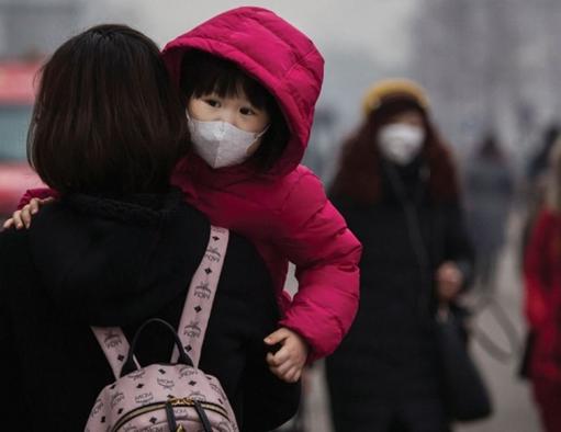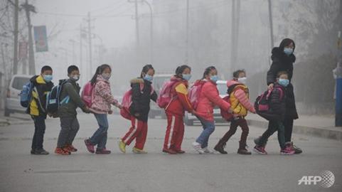 Trẻ em Trung Quốc đến trường học trong bầu không khí ô nhiễm
