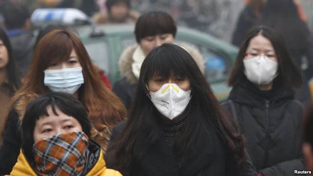 Người dân mang khẩu trang đang đi giữa đám khói dày đặc trong buổi sáng tại thành phố Bắc Kinh, Trung Quốc ngày 26/2/ 2014