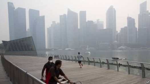 Ngày 10/9/2015. SINGAPORE-Khói bụi đầy trời gây khó chịu cho các du khách khi Singapore đang chuẩn bị cho cuộc Bầu cử (Hazy Skyline Irks Tourists as Singapore Readies for Polls). Ô nhiễm không khí tại Singapore đã đạt tới mức cao nhất trong một năm vào hôm thứ năm khi mà khói bụi từ các đám cháy rừng từ Indonesia đã bao phủ quốc đảo này trong một bầu trời xám xịt, làm khó chịu các du khách và làm hoảng sợ các nhà chức trách với chỉ vài giờ nữa là bắt đầu tổng tuyển cử. Theo Cơ quan môi trường Quốc gia Singaporechỉ số tiêu chuẩn chất gây ô nhiễm là phép đo ô nhiễm không khí chính của Singapore, đã đạt tới mức 160 vào cuối buổi chiều vượt qua ngưỡng “độc hại” chính thức là 100. Khi vượt quá mức 200 được coi là “rất độc hại” đặc biệt đối với trẻ nhỏ, người già và những người mắc bệnh tim và phổi. Trong năm 2013, chỉ số trong 3 giờ tương tự đã đạt mức cao kỷ lục là 401, vượt qua mức “nguy hiểm” là 300. Tài xế xe tải Ken Ridden, người mới tới đây từ Queensland, Australia trong một chuyến đi 5 ngày cùng với vợ, con gái và con trai của anh cho biết: “Thật là có chút thất vọng, chúng tôi đều không biết sẽ xảy ra chuyện này”. Anh chỉ vào bầu trời mà tầm nhìn hầu như bị che khuất và nói rằng: “Bạn thấy tất cả những hình ảnh đẹp trong sách quảng cáo du lịch và chúng nhìn đẹp đấy với khói bụi xung quanh”.