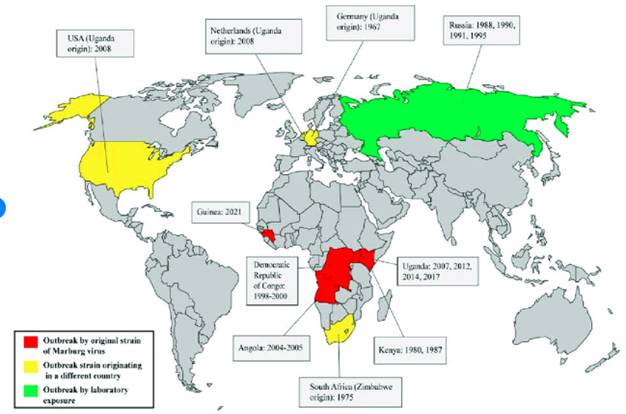 Hình 2. Bản đồ dịch tễ bệnh do virus Marburg trên thế giới