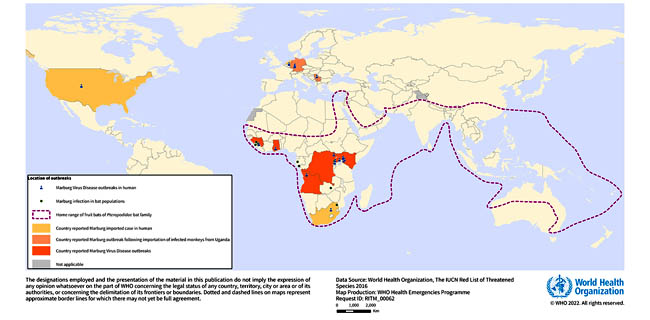 Khi đó, 31 người tiếp xúc với virus trong khi tiến hành nghiên cứu trên khỉ đã bị bệnh và 7 người đã chết. CDC cho biết dơi ăn quả châu Phi là vật chủ chứa virus.Virus này có khả năng lây nhiễm cao ở Trung Phi, TCYTTG đã phải mở cuộc họp khẩn cấp bàn về biện pháp phòng, chống.