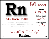Cập nhật tháng 6/2016. Tổ chức Y tế thế giới (WHO)-Radon và sức khỏe (Radon and health). Radon là một chất khí phóng xạ xảy ra tự nhiên, không có màu sắc hoặc mùi vị được sản xuất từ phân rã phóng xạ tự nhiên của uranium, có trong tất cả các loại đá và đất cũng có thể tìm thấy trong nước. Radon thoát ra dễ dàng từ mặt đất vào không khí, nơi nó phân rã và phát ra các hạt phóng xạ, khi chúng ta hít thở các hạt được lắng đọng trên các tế bào lót đường hô hấp có thể làm tổn hại DNA và có khả năng gây ung thư phổi.