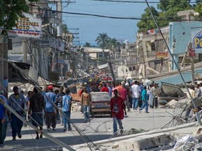 Tại thủ đô Port-au-Prince, nơi có khoảng 1 triệu dân, khung cảnh vô cùng hoang tàn thê lương. Xác chết nằm lăn lóc trên đường, nhiều phụ nữ bò ra từ đống đổ nát vẫy tay cầu cứu. Một nhân chứng mô tả: “Cả thủ đô bị bao phủ dưới những đám mây bụi khổng lồ và sự hoảng loạn diễn ra toàn diện”.