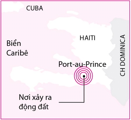 TT - Trận động đất 7 độ Richter tại thủ đô Port-au-Prince của Haiti vào chiều 12-1 đã “gần như chôn vùi mọi thứ” từ các căn nhà ổ chuột đến tòa nhà quốc hội, dinh tổng thống, các trụ sở của Liên Hiệp Quốc, Ngân hàng Thế giới. Số người chết và bị thương chưa thống kê, nhưng các hãng tin lớn đều nói có thể là hàng ngàn người.
