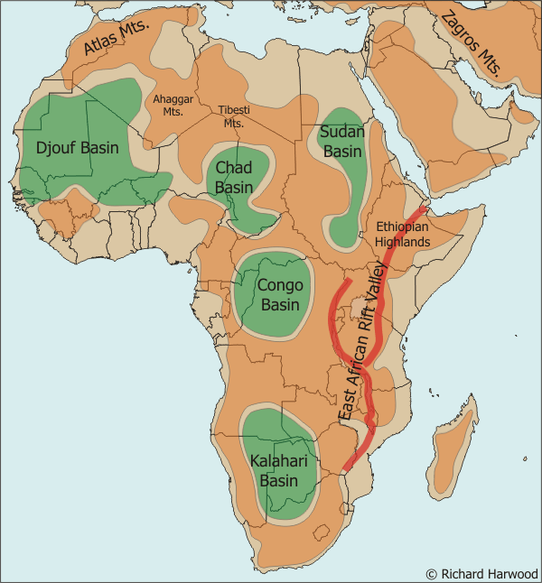 Thung lũng Rift trên bản đồ châu Phi (Map of East Africa's Great Rift Valley)